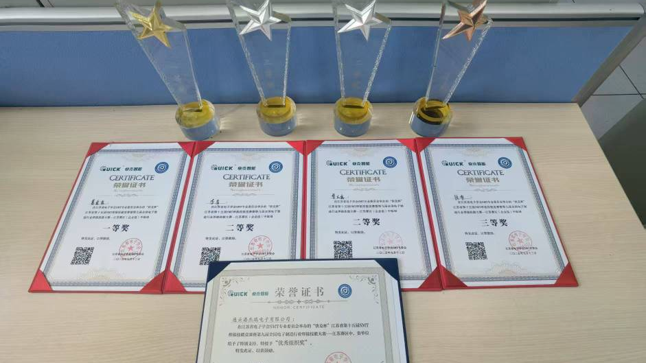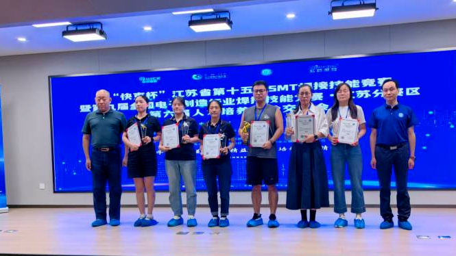 近日,由江苏省电子学会SMT专业委员会主办的“快克杯”江苏省第十五届SMT焊接技能竞赛暨第九届全国焊接能手选拔赛顺利落幕,中国船舶集团旗下九游体育平台官方网站(下称“杰瑞电子”)选派4人参赛并全部获奖。其中,葛露露荣获一等奖,李萍、曾庆露荣获二等奖,徐梦荣获三等奖,杰瑞电子喜获“优秀组织奖”。